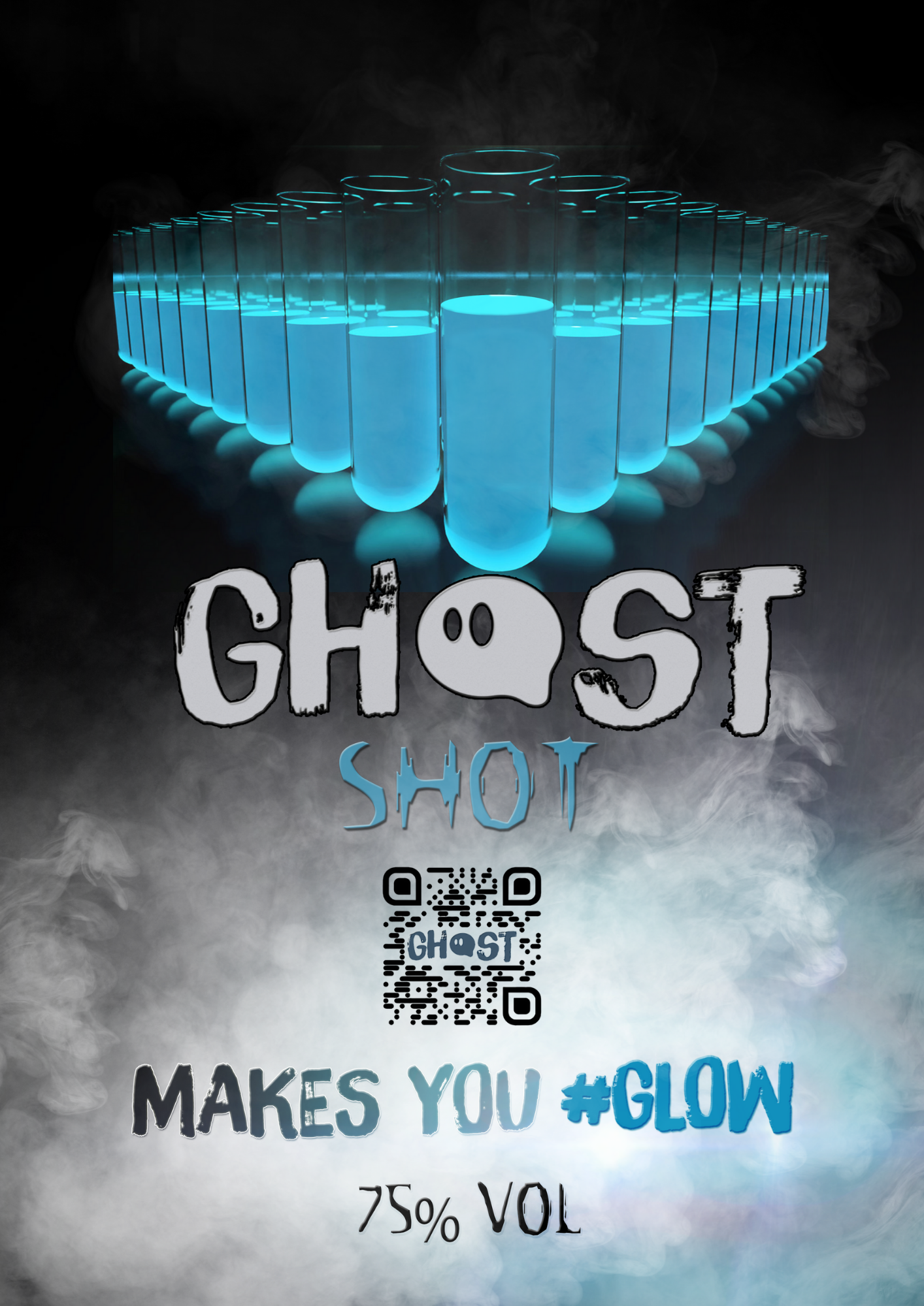 Our modern interpretation is a bold, otherworldly spirit — a formidable 75% vol blue vodka-based liqueur infused with quinine and engineered to radiate an unearthly glow beneath black light. Designed not merely as a drink, but as an experience, Ghost Shot brings a theatrical edge to every gathering.